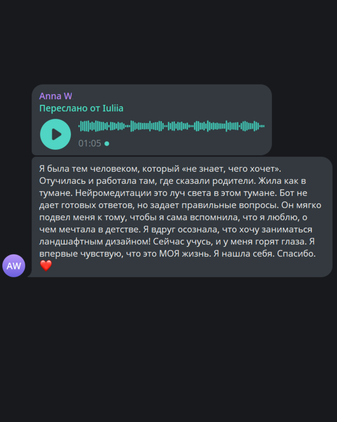 Искусственный интеллект — ваш помощник, алгоритмы AI анализируют ваш ввод автоматически, без участия человека. Система обучается на обобщённых данных и не хранит индивидуальные истории или личные аудио.